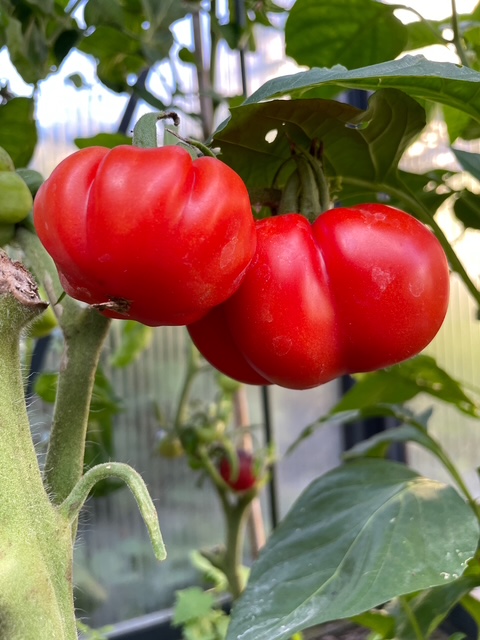 Italienisches Ochsenherz – Große, fleischige Fleischtomate mit herzförmigen Früchten. Aromatisch, saftig und mild-süß, ideal für Salate, Sau