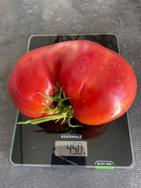 Große, fleischige Fleischtomate mit mildem, süßlichem Geschmack. Sehr aromatisch, robust und ertragreich.