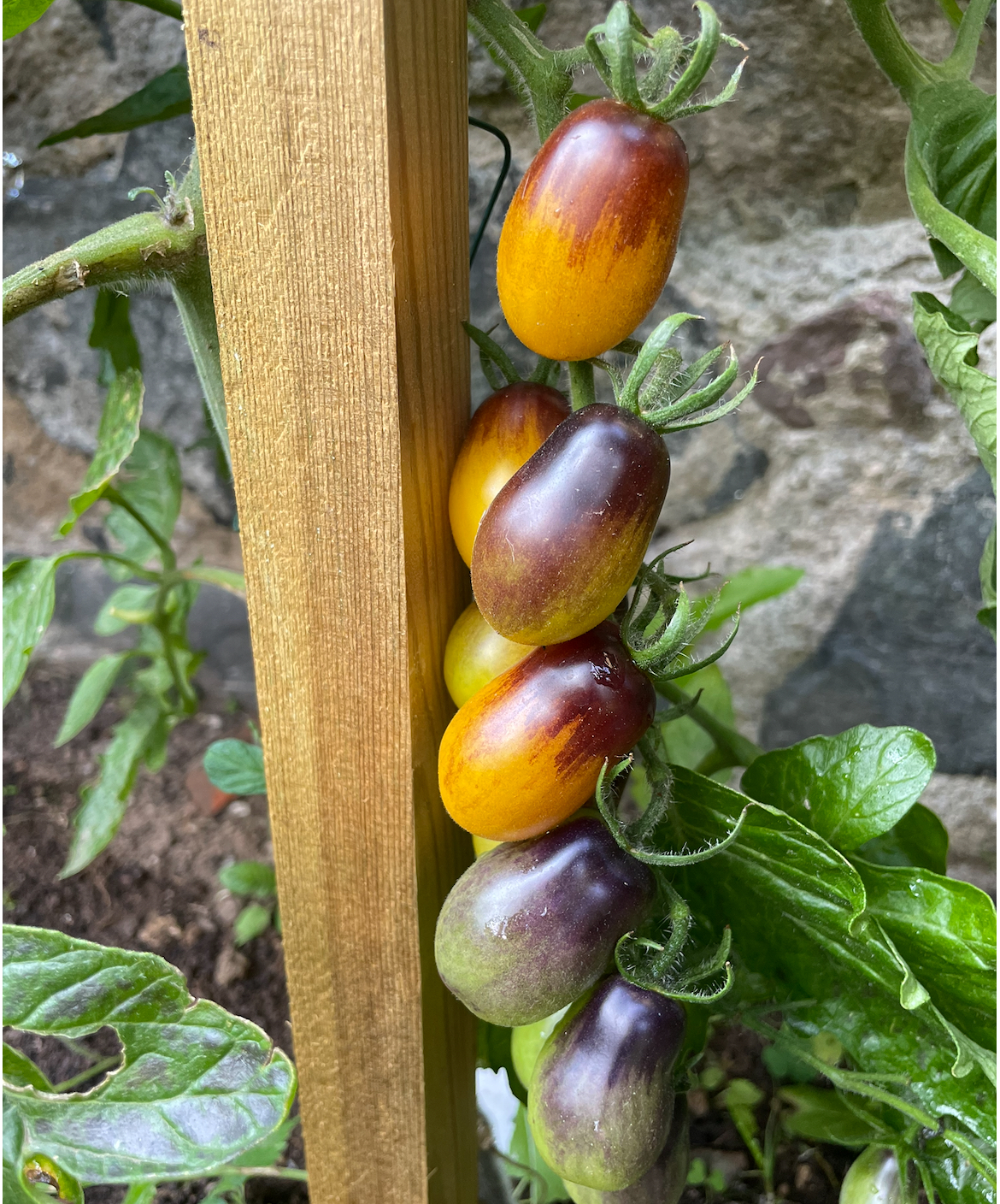 Indigo Pear Drops – Kleine, birnenförmige Cherrytomaten mit dunkelvioletter Schale und süßem, fruchtigem Geschmack.